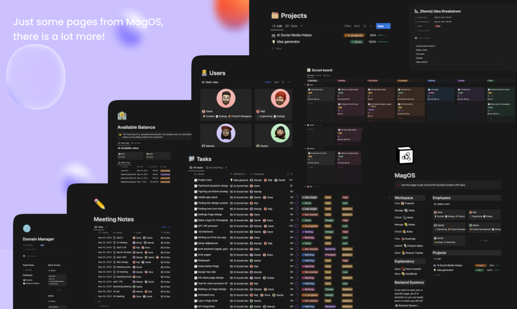 The real push to share MagOS came when I saw my brother grappling with his Notion setup. It was disconnected and all over the place, a far cry from the streamlined efficiency that MagOS brought to my team. It was a lightbulb moment - if MagOS could transform my team's workflow, why not share it with other teams and individuals?